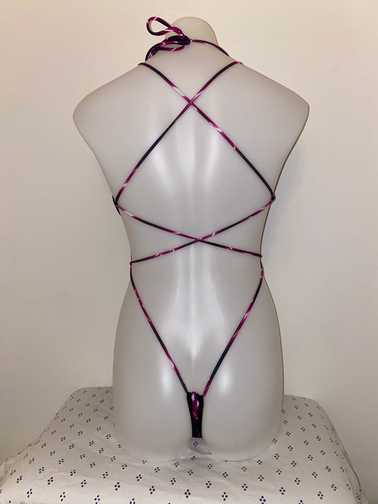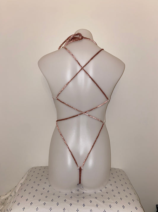 Pink Crushed Velvet 3 Ring Circus Bodysuit